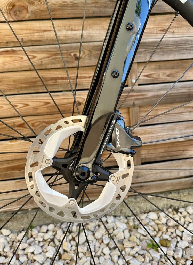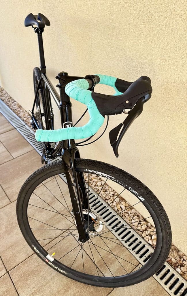 A képeken a kerékszett nem a leírásban szereplő DT Swiss Endurance, hanem a felsőkategóriás DT SWISS PR1400, 240-es aggyal, pihekönnyű, karbon kerekeket is megszégyenítő súllyal: 1450 gramm!